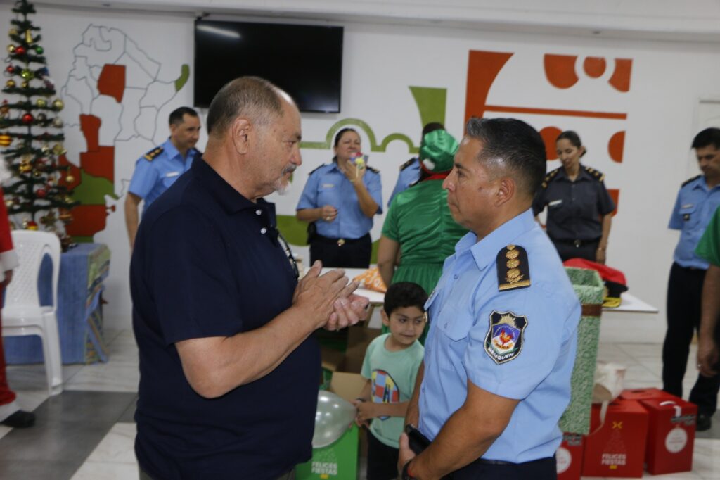 El comisario general Christian Sáez y sus colaboradores, junto a los departamentos de logística y finanzas entregaron regalos y golosinas a todas las familias.
